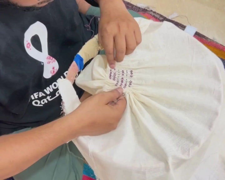 Juhi’s journey began with formal training in fashion, where she developed a deep respect for Indian crafts and honed her skills in silhouettes, fabric manipulation, and surface detailing. Amit’s path was different ; without formal training, he discovered his creative instincts while working alongside Juhi, learning fabric sourcing, sketching, and styling. Their collaboration grew naturally, combining Juhi’s technical expertise with Amit’s intuitive design sense, allowing them to complement and challenge each other. Together, they shaped URNAM, a label where every piece reflects their shared vision : modern, meaningful clothing deeply rooted in Indian artistry.