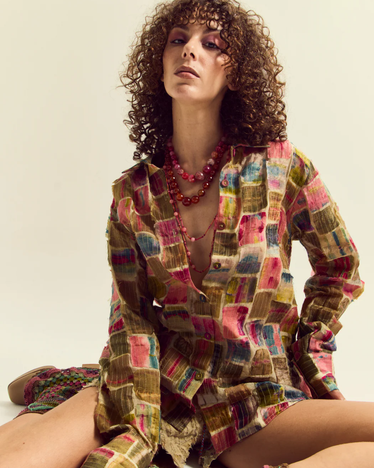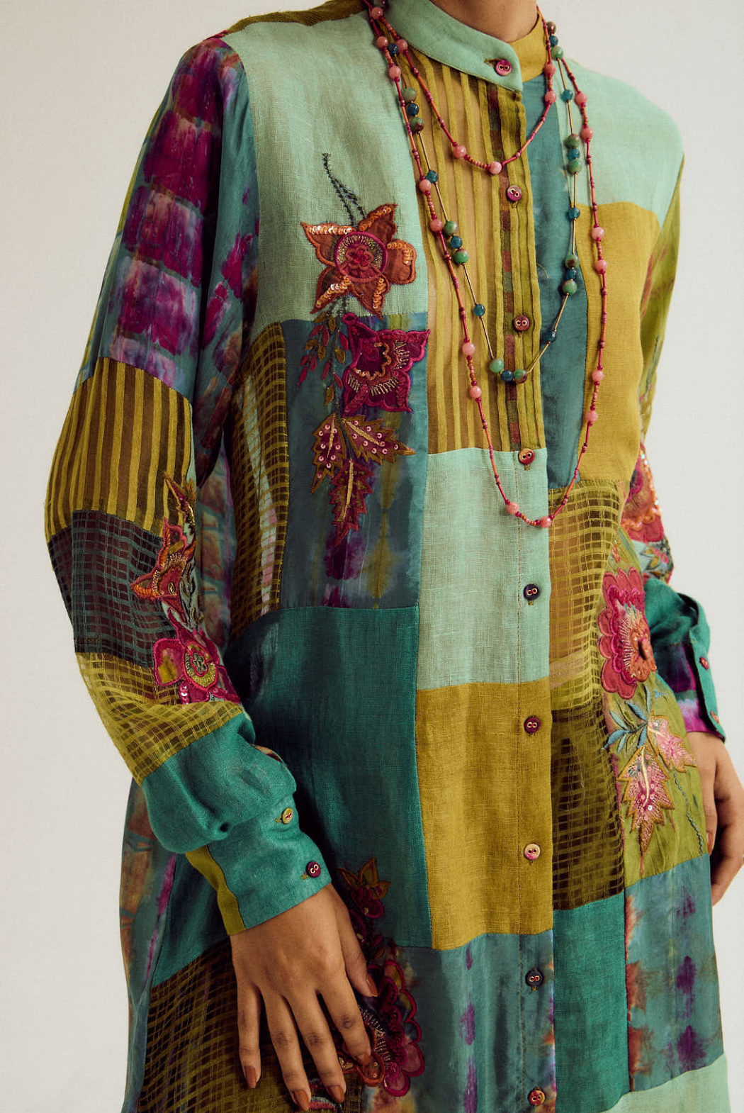 Note - A gorgeous palette of 100% pure reclaimed linen and on it, festooned with loving care the skillfull art of aari-embroidery, making this piece feel like a talisman, again.